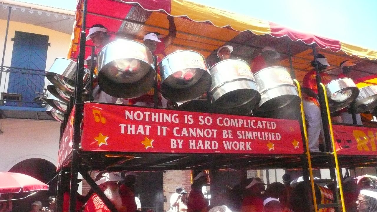 Traffic will be worse at the start of the week than normal, but better than later in the week. You might actually want to consider coming over for the main parade towards the end of the week. Lots of food and drink is available on the street; the parade is early in the afternoon, on a road parallel to the waterfront in Charlotte. IT WILL BE LOUD. Our senses were (delightfully) assaulted with triple-long, double-decker trailers of steel drums, over the top costumes, and really tall mocko jumbies. A few photos from the 2011 Carnival follow.