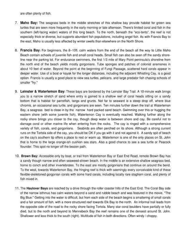 How you can you leave off Maho, Cinnamon, Denis Bay, Perkins Cay, Waterlemon, Blue Cobblestone, Lameshur, Reef Bay, Salt Pond, Hansen, Chocolate Hole (to east), Ditliff Point, Gibney, Oppenhiemer, etc. Each trip produces a new perspective. The clarity of the water and the calmness may leap frog spot over another for that trip.