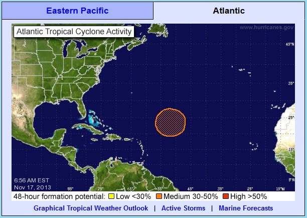 The shift in the trade wind direction from a bit south of east in summer, to a bit north of east in winter contributes to increased surf on exposed north shore beaches, but periods of really heavy surf conditions are due to swells generated by storms further out in the Atlantic. My earlier post in this thread included an NHC snapshot of a circulating low north of the VI, which then intensified to become a named tropical storm (Melissa) two days ago. It is picking up speed and won't be around much longer (although Portugal may feel its effects), but it is Atlantic storms such as these that kick up the big waves.