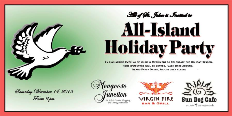 Mongoose Junction’s 18th Annual All Island Holiday Party will be held on Saturday, December 14, 2013 from 9 pm until 2 am.