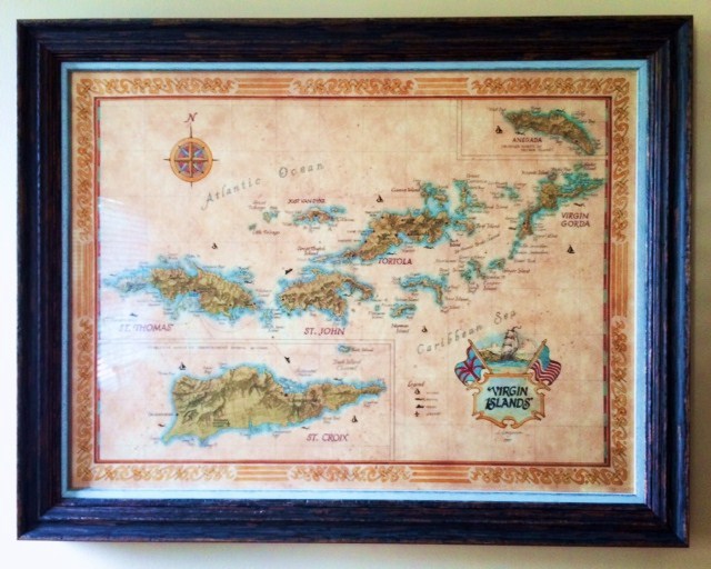 This is it!UF Prof wrote:I got one at Ruth's Spice Shop several years ago. Shows the BVIs and USVIs (both St Croix and Anegada shown as insets, lower left and upper right, respectively). Framed nicely, roughly 24 x 36" framed.