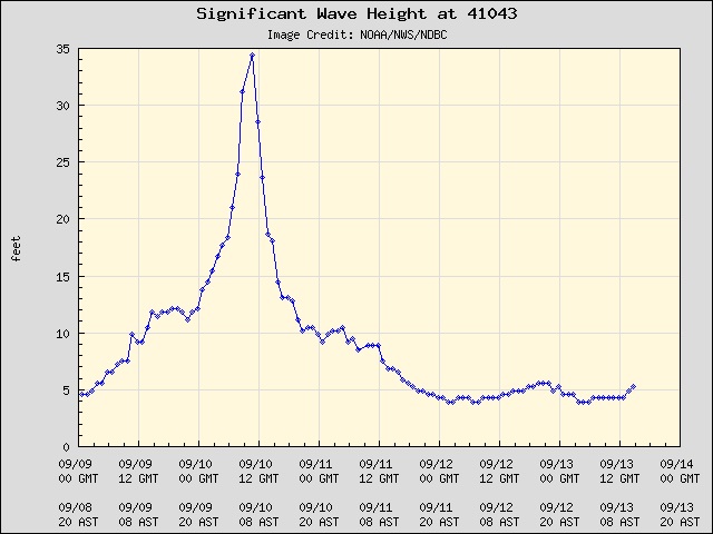 St. John's North Shore beaches were pummeled two days ago by extremely high swells, produced by Hurricane Jose, which is still lurking well north of the VI. The peak swell height during Irma was 23 feet; Jose produced swells of 35 feet!