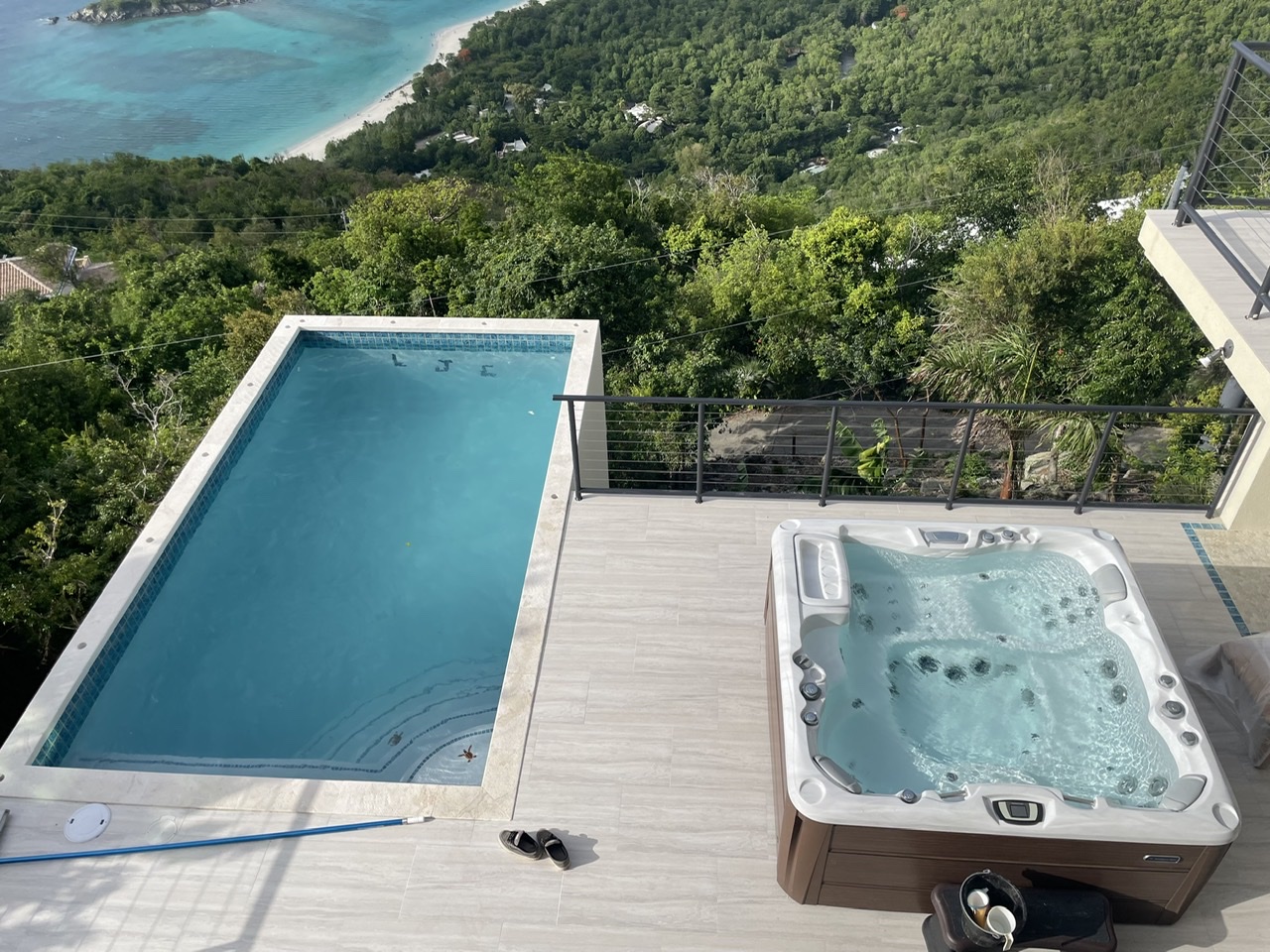 New pool and hot tub nearly complete. What a view