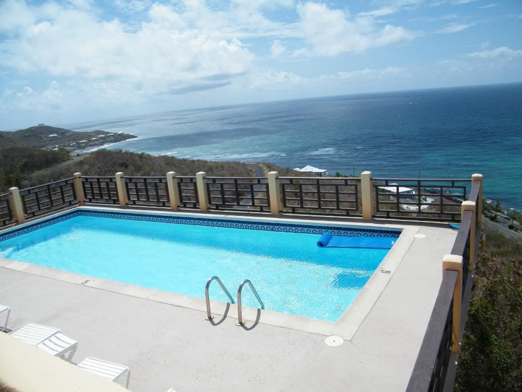 I was up at Crucian Hacienda last April. I really liked the covered outdoor spaces and it's built in a very different style. It's a good location on the east end, above the Divi where there is a double deck at the end of the pier – we like to go there in the late afternoon for a drink and head out to the upper level to enjoy the view. It’s south shore so you have that open ocean view past the reef, and you can head around to the east to go west again on the East End Road (it forms kind of a loop out there at the narrow end of the island) for more beach and restaurant choices. Hacienda has a fabulous high view. I remember seeing some pictures of a wedding that was held up there and the villa just glowed with candles in the late afternoon – very serene. When we were there the east end was very dry but the view was still gorgeous - here are a couple of pix I took that day:
