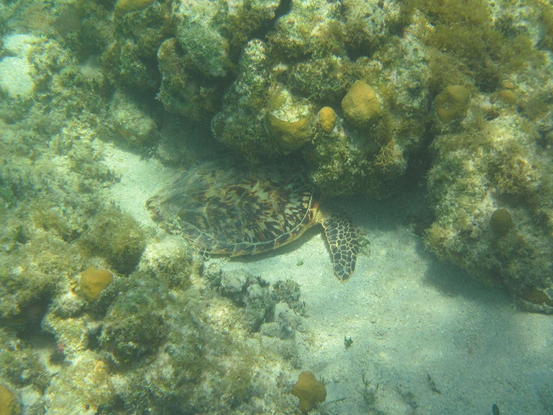 . We wave at them to make sure they see us and anticipate that they've left to find another spot to play. However, a few minutes later, they are back and even though they clearly see us they come between my sister and my husband. We yell at them and there is another guy in a boat nearby that REALLY game them a piece of his mind. He must have carried more weight than we did cause they left and didn't come back. We didn't see a lot on this snorkel, but when you're lifting your head out of the water every few minutes to see if you are about to get run over, it's hard to focus