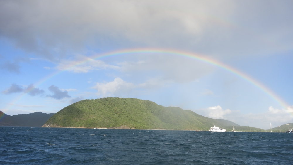 Cantwait: Sixty bucks all-in will get you an hour on a Hobie-Cat at Cinnamon Bay. No advance planning required, and a lot of fun! If you don't know how to sail, Kendall and the folks there will be happy to show you, and their Hobie Cats are really very simple and easy to sail. Five would be pushing things, depending on the age of your children, but you can always sail back into Cinnamon Bay and change crews. We have a sailing trimaran kayak that we have taken on extended, inter-island sails, but we still grab a Hobie Cat at Cinnamon from time to time because it is so easy to pull off. You can sail out to the St. John side of Whistling Cay, and in to Maho and Francis Bays. We were sailing one of Cinnamon's Hobie Cats out by the customs house on Whistling Cay a few weeks ago, when a mega-yacht (Archimedes) went right past us as it pulled into Maho Bay for a few nights. I have a photo of the nearby yacht at home, but for the moment, here are two other photos from that sail: