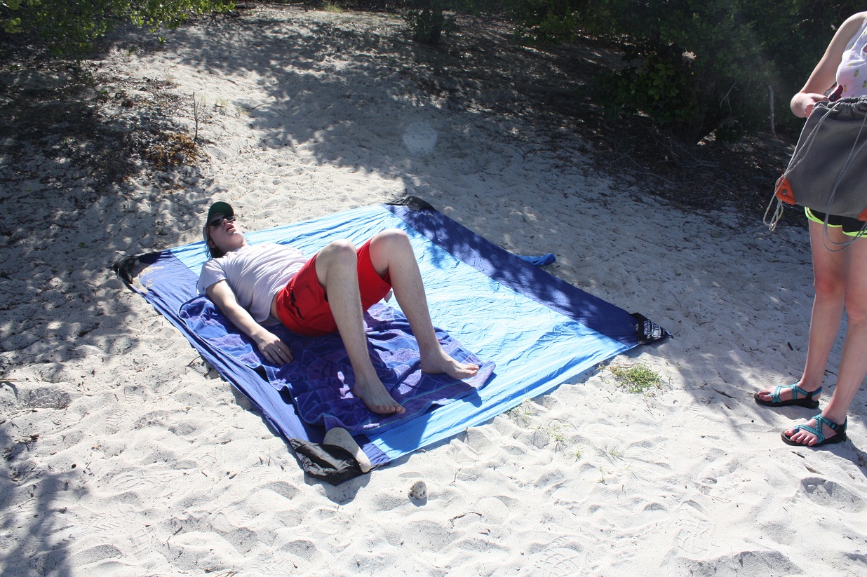 We have used the para sheet for the last 2-3 trips to the rock and it is awesome. Light weight, folds small, covers a good size area, easy to anchor with sand, and cleans easily. (Even used it as a rain cover when it rains in paradise)